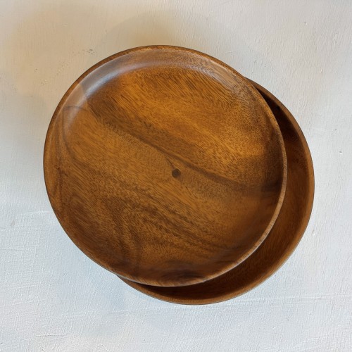 Plato redondo realizado en madera de acacia natural, un material noble, resistente y duradero.