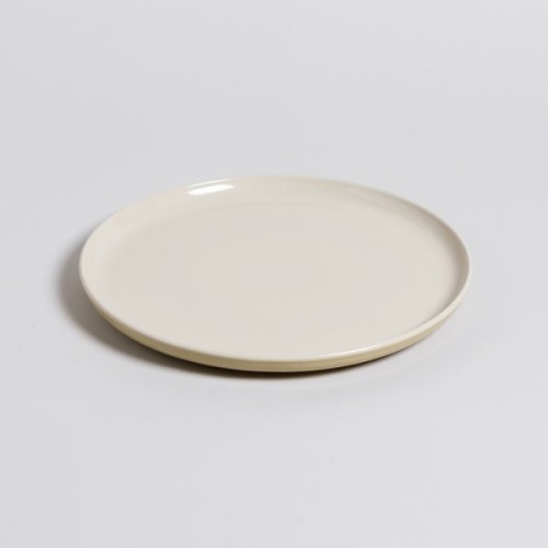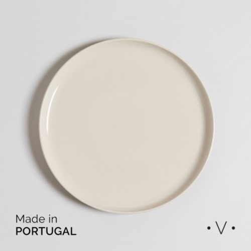 Plato de cerámica de calidad premium, en tono hueso por dentro y un suave tono aceitunado por fuera, con esmaltado brillante.